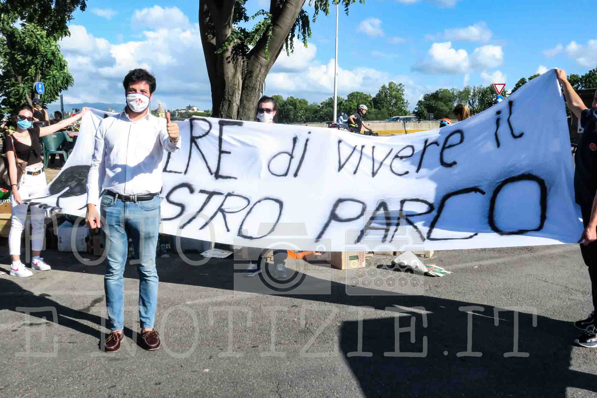 Nel pomeriggio di ieri l’evento organizzato dal Consigliere del Q.3 Alessio Di Giulio “Fiorentini Riprendiamoci le Cascine” ha visto la presenza di numerosi fiorentini e di famiglie che si sono ritrovati in piazza Vittorio Veneto con striscioni inneggiati per un ritorno alla “normalità” del parco polmone verde di Firenze oltre alle bandiere tricolori e gigliate, che hanno poi sfilato sul lungarno pedonale verso la passerella dell’Isolotto costeggiando l’Arno; a fare da cornice all’iniziativa di Alessio Di Giulio anche il rombo dei motori dei bikers IRON FIST ITALY in mezzo al tricolore dei fumogeni.