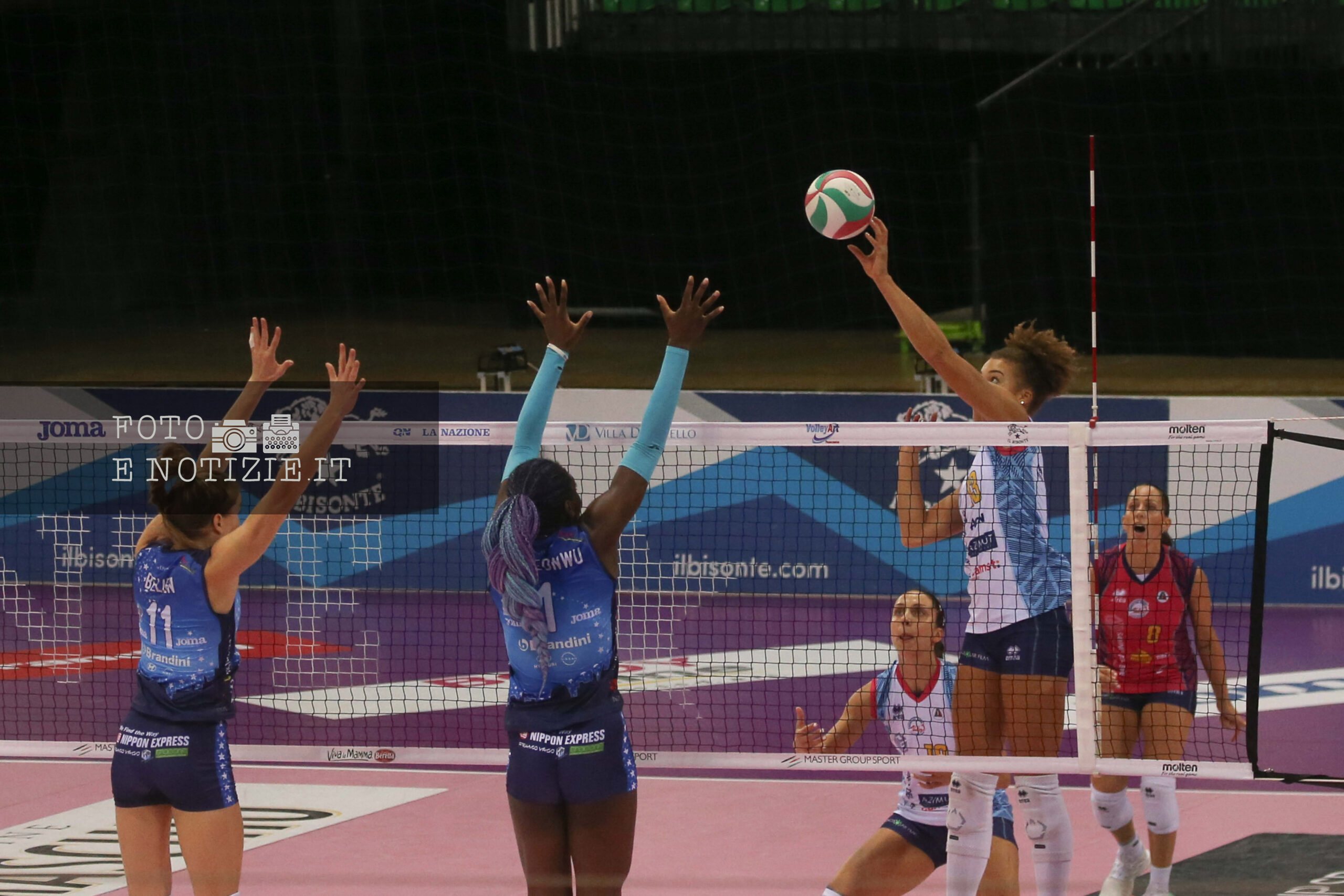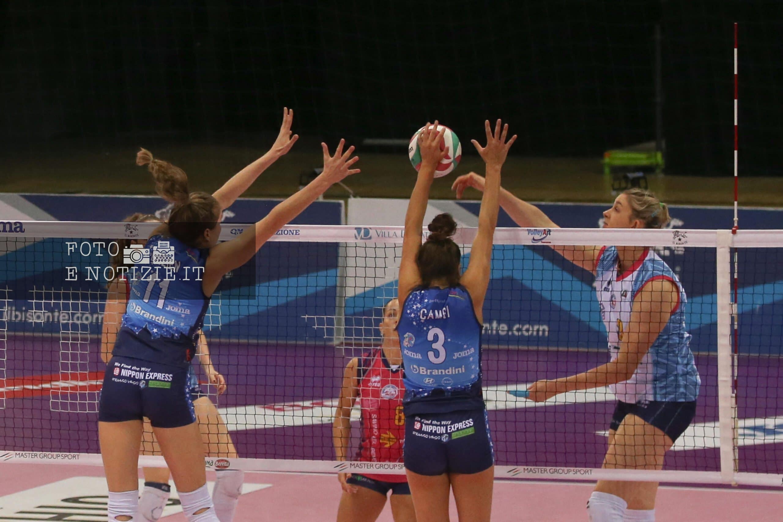 La Savino del Bene vince il derby gigliato del volley nel quarto turno del campionato di Serie A1 al Mandela Forum di Firenze contro le padrone di casa de Il Bisonte Firenze.
