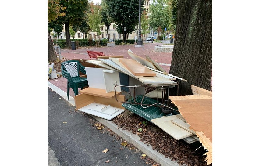 Abbandona sedie in plastica, persiane e pannelli di legno in piazza Pier Vettori, individuato e multato dalla Polizia Municipale