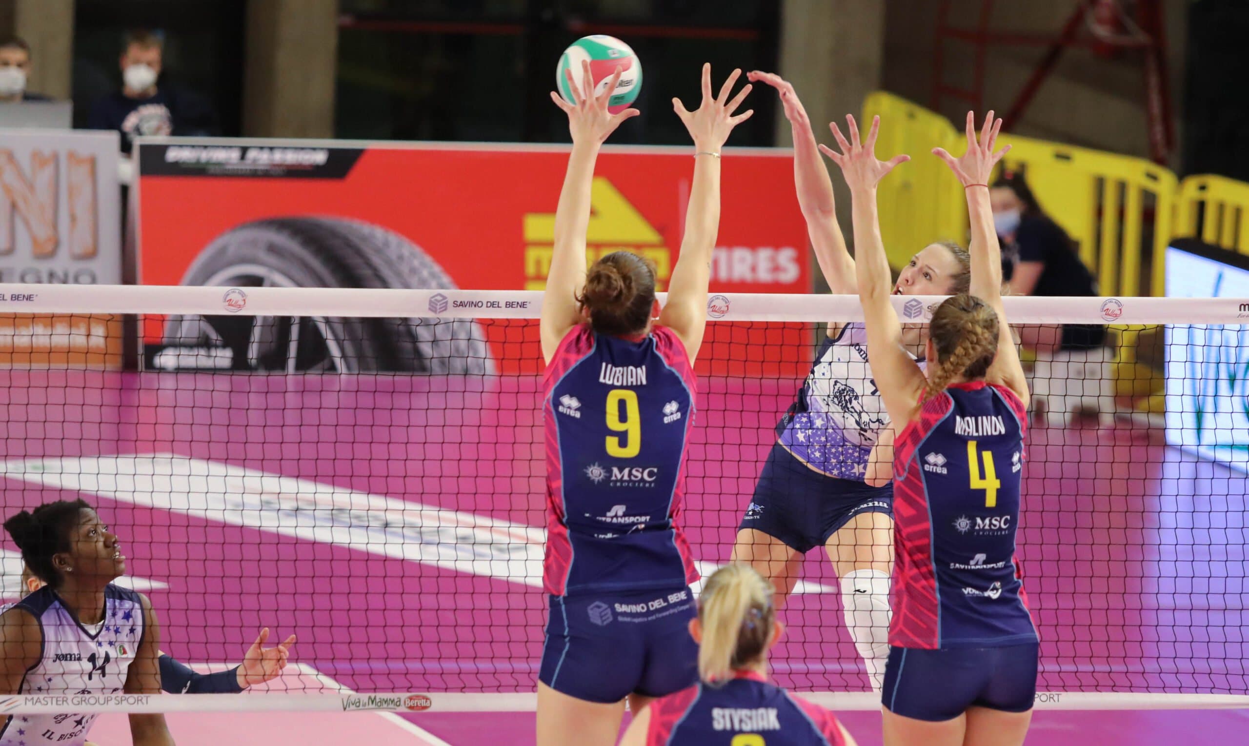Marco Mencarelli parte con Cambi in regia, Nwakalor opposto, Lazic e Guerra in banda, Alberti e Ogoms al centro e Panetoni libero, mentre Barbolini risponde con Malinov in palleggio, Stysiak opposto, Courtney e Vasileva schiacciatrici laterali, Lubian e Popović al centro e Merlo libero.
