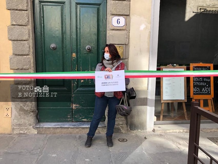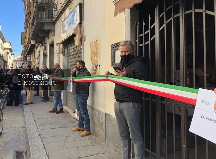 Uniti da una lungo nastro con i colori del tricolore, ristoratori, albergatori, artigiani, hanno dato vita ad un flash mob che si è snodato da via Verdi fino a piazza Duomo.