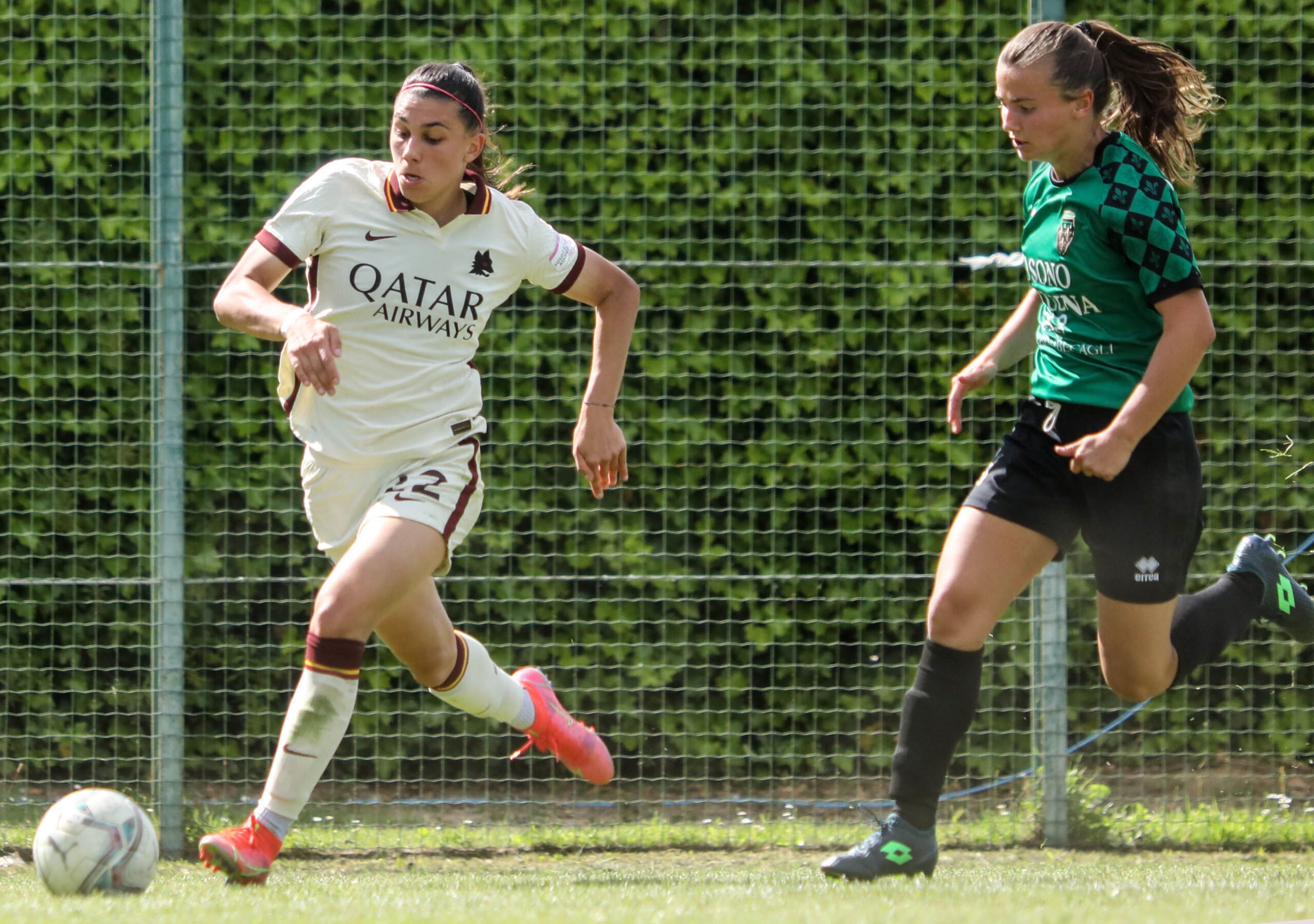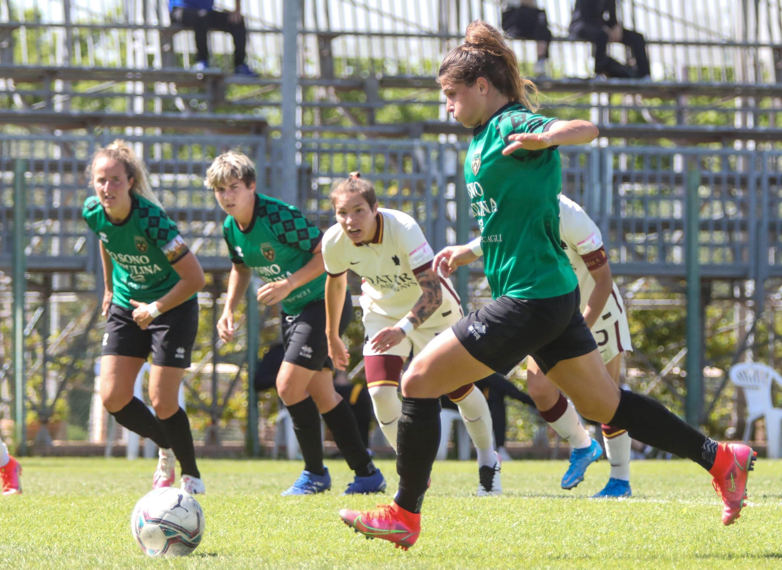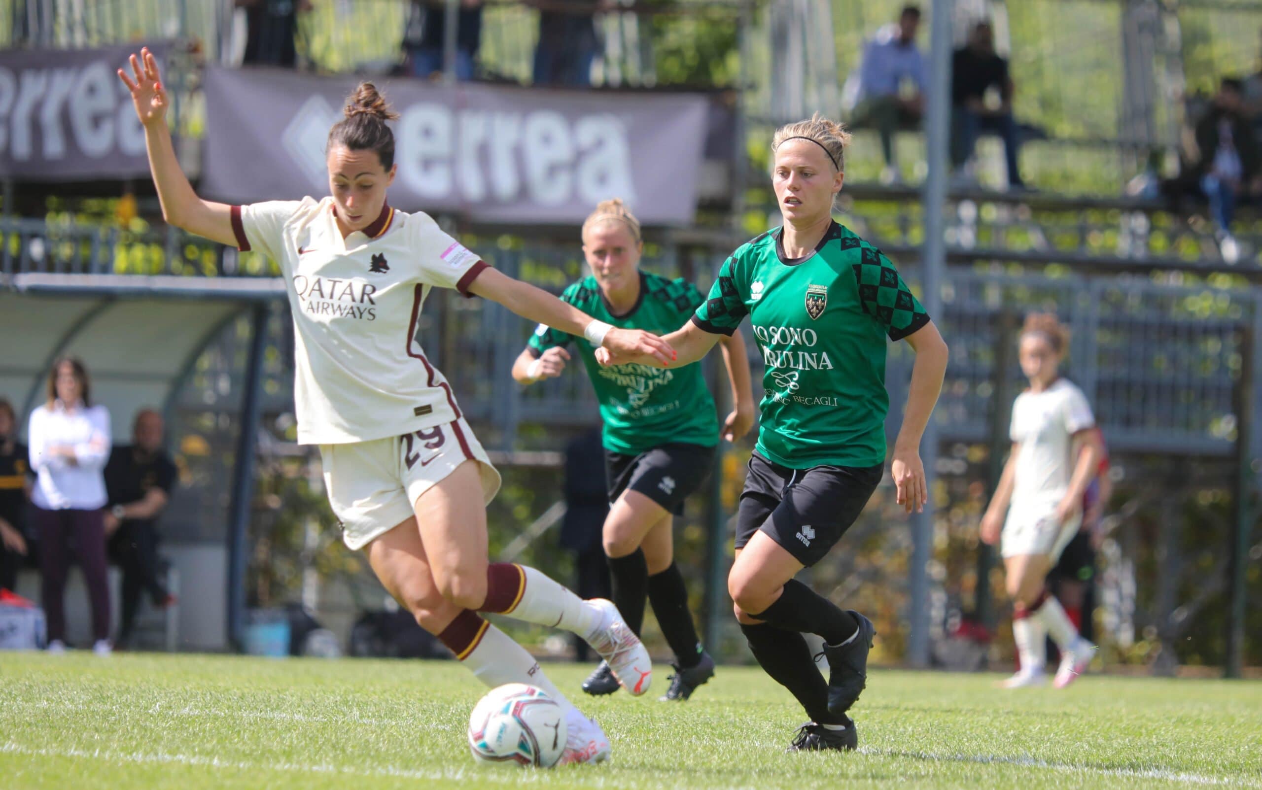 Le ospiti hanno il controllo delle azioni fin dall’inizio della partita e passano in vantaggio al primo tiro verso la porta neroverde: su calcio d’angolo di Giugliano, Linari, troppo sola in area, ha il tempo di prendere la mira per segnare la rete dello 0-1.