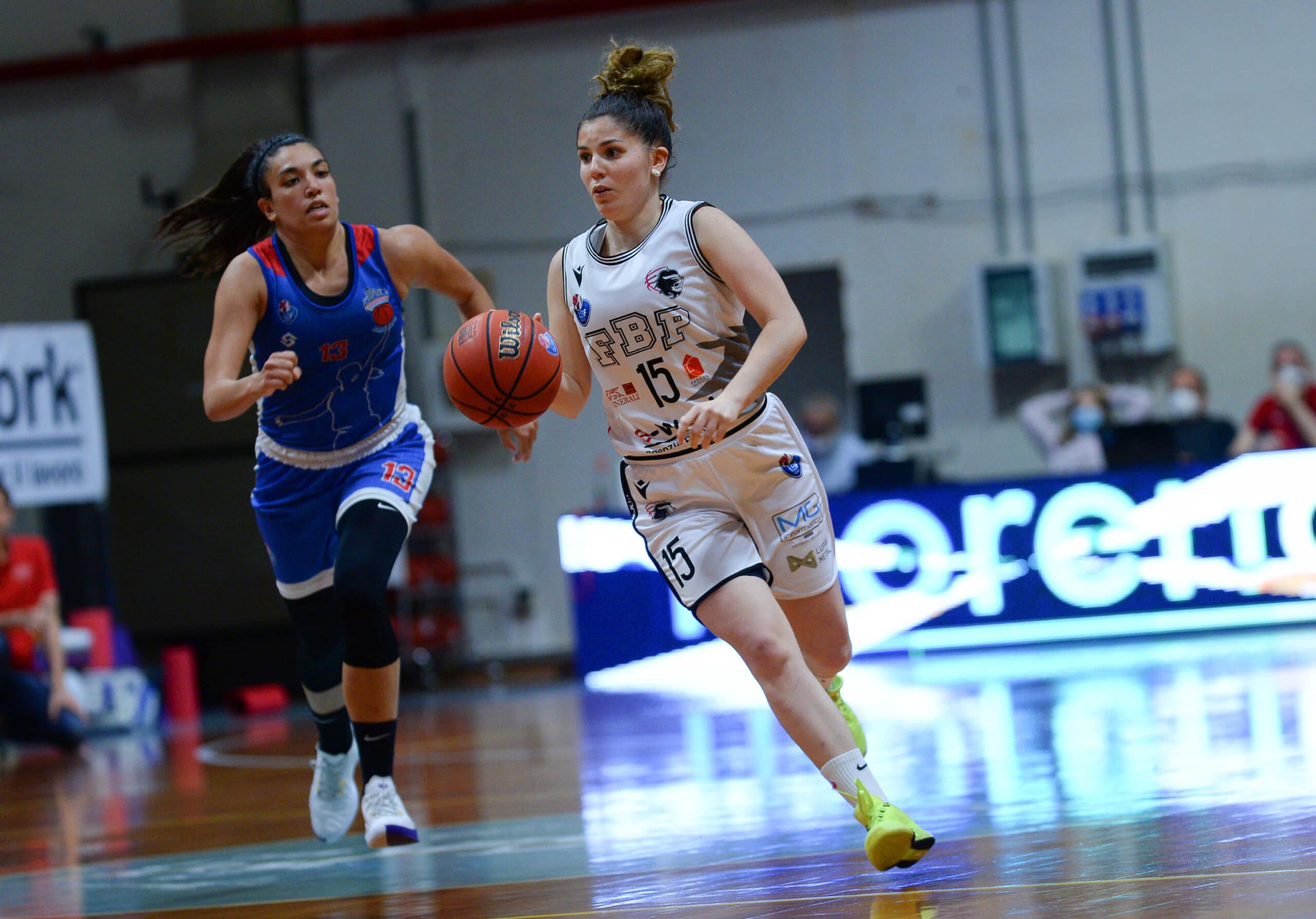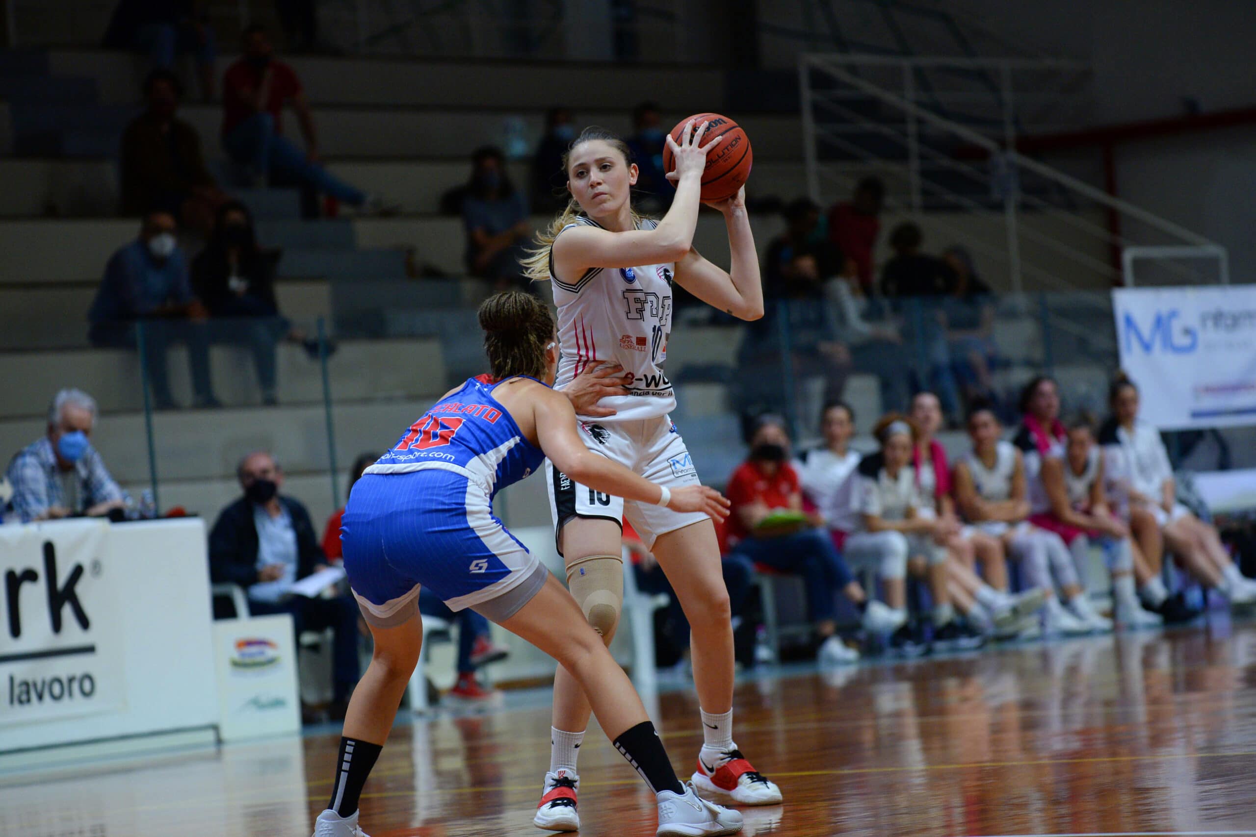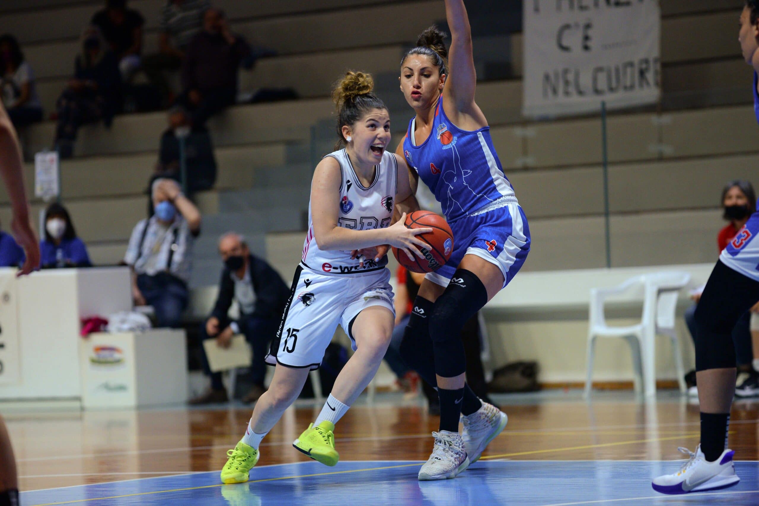 Entrambe le squadre partono con gli stessi quintetto visti in gara1, con l’E-Work che quindi sceglie Schwienbacher, Franceschelli, Policari, Morsiani e Vente. Subito ritmi alti anche in questa serata, col primo mini break bianconero firmato dalla tripla di Schwienbacher per il 12-6. Patti prova a reagire con Galbiati e Verona, ma Faenza allunga fino anche al 21-11. Le siciliane passano a zona per limitare l’offensiva faentina e firmano un 5-0 che le riavvicina nel punteggio. La prima frazione si chiude con la tripla dall’angolo di Policari che vale il 27-19.