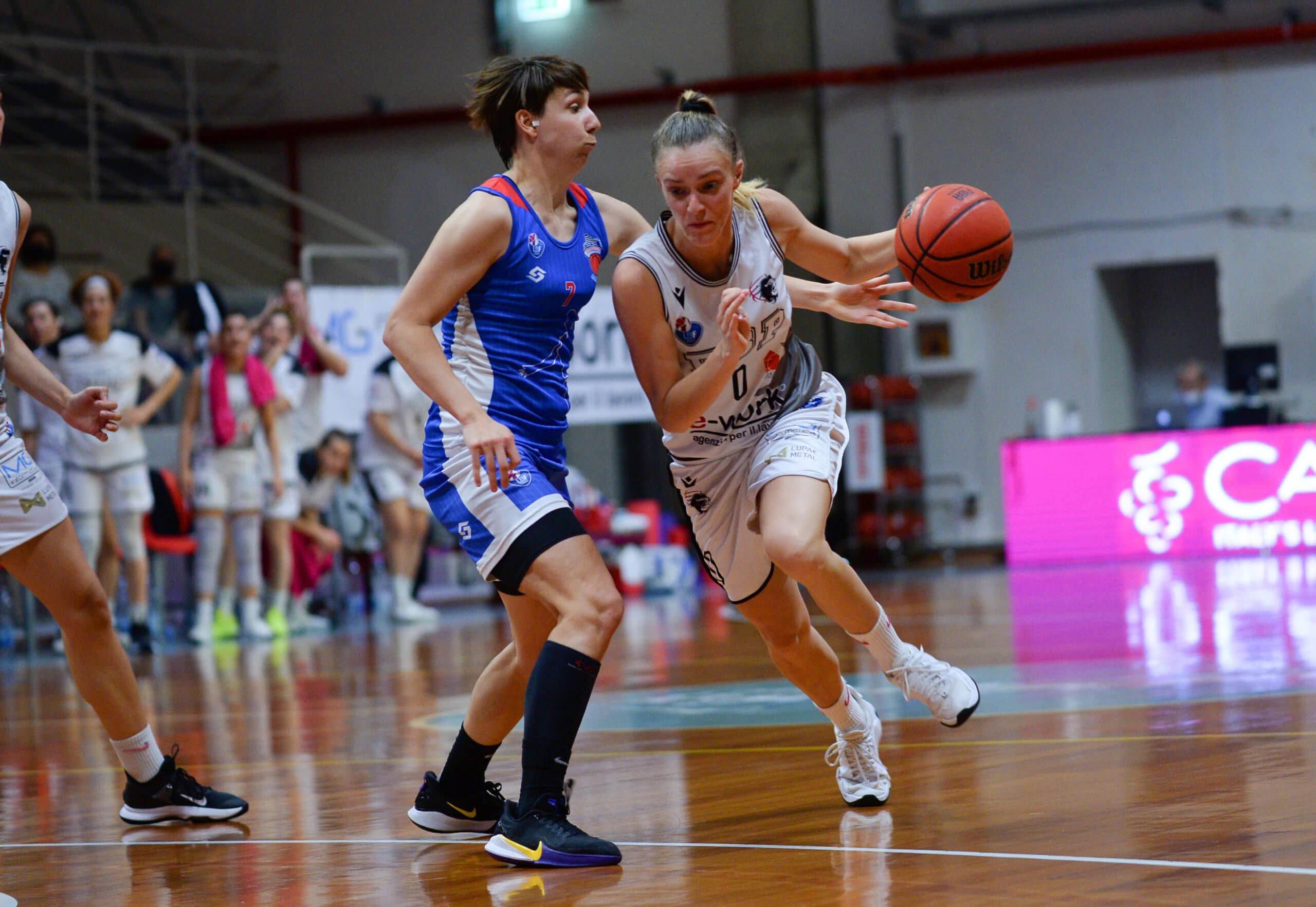 Nel secondo quarto l’E-Work continua ad alzare il ritmo offensivo e mantiene altissima anche la % dal campo, rimanendo praticamente perfetta da oltre l’arco con le conclusioni di Ballardini e Meschi. Le ospiti non trovano continuità in attacco e la sola Galbiati non basta per tenere a galla la squadra di Buzzanca. Faenza dal canto suo non si volta indietro e tocca anche il +18 (49-31), rientrando negli spogliatoi in totale controllo e con Schwienbacher e Vente top scorers a quota 9.