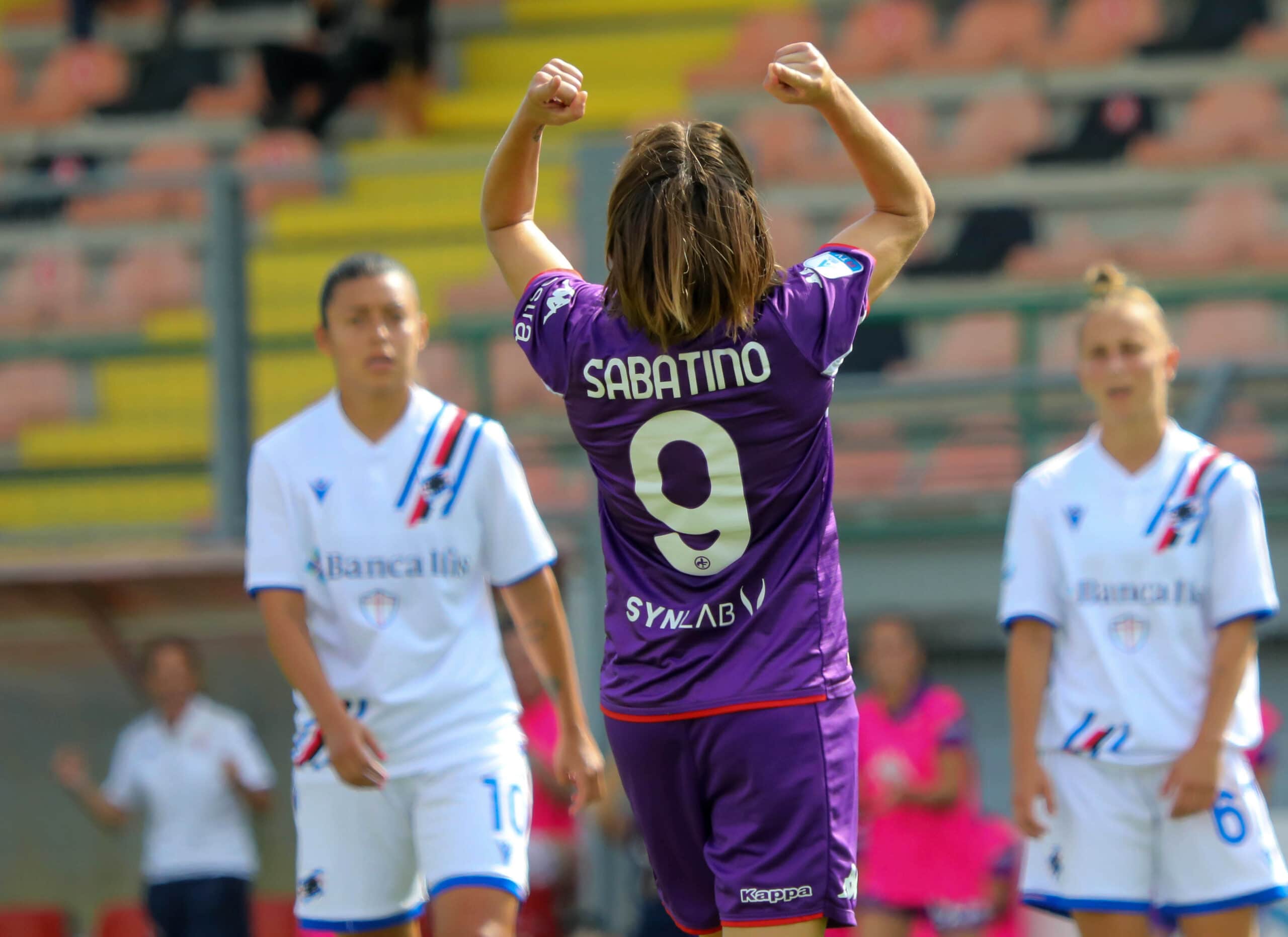 La Fiorentina parte in quarta e dopo un paio di tentativi trova il goal al quarto d’ora. Sabatino si procura un calcio di rigore e dal dischetto porta avanti le gigliate. Bellissima la dedica con maglia a Martina Zanoli, infortunatasi al ginocchio la scorsa settimana.