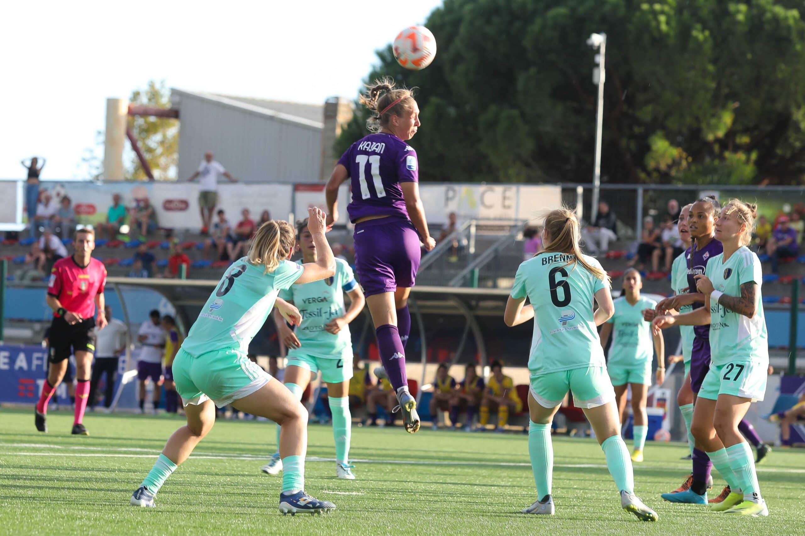 Dieci minuti dopo Huchet lancia per Boquete che prende velocità, supera un’avversaria e deposita alle spalle di Korenciova. Il 2-0 regge fino al 36’ quando a Kubassova viene offerto un filtrante che la mette a tu per tu con Schroffenegger. La comasca non può sbagliare e riporta le ospiti in partita.